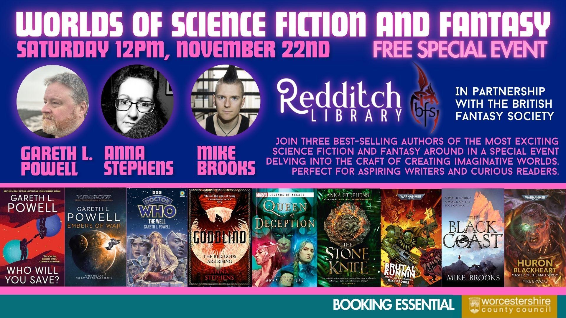 In conversation with Gareth L. Powell, Anna Stephens and Mike Brooks, an exclusive special event. Aspiring writers and fans of science fiction and fantasy can’t afford to miss this event with three of the most successful and highly regarded authors in speculative fiction.