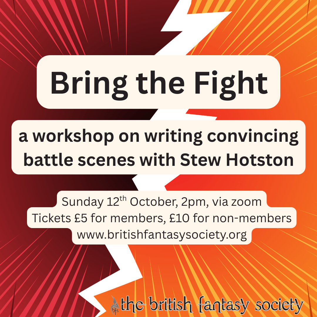 The workshop will look at duels, mass battles, weapons, science and magic as well as how meaningful stakes make battles interesting. We’ll also dig into whether fights have to be realistic to make sense. All designed to help you develop your own fights and conflicts in a way that works for you.