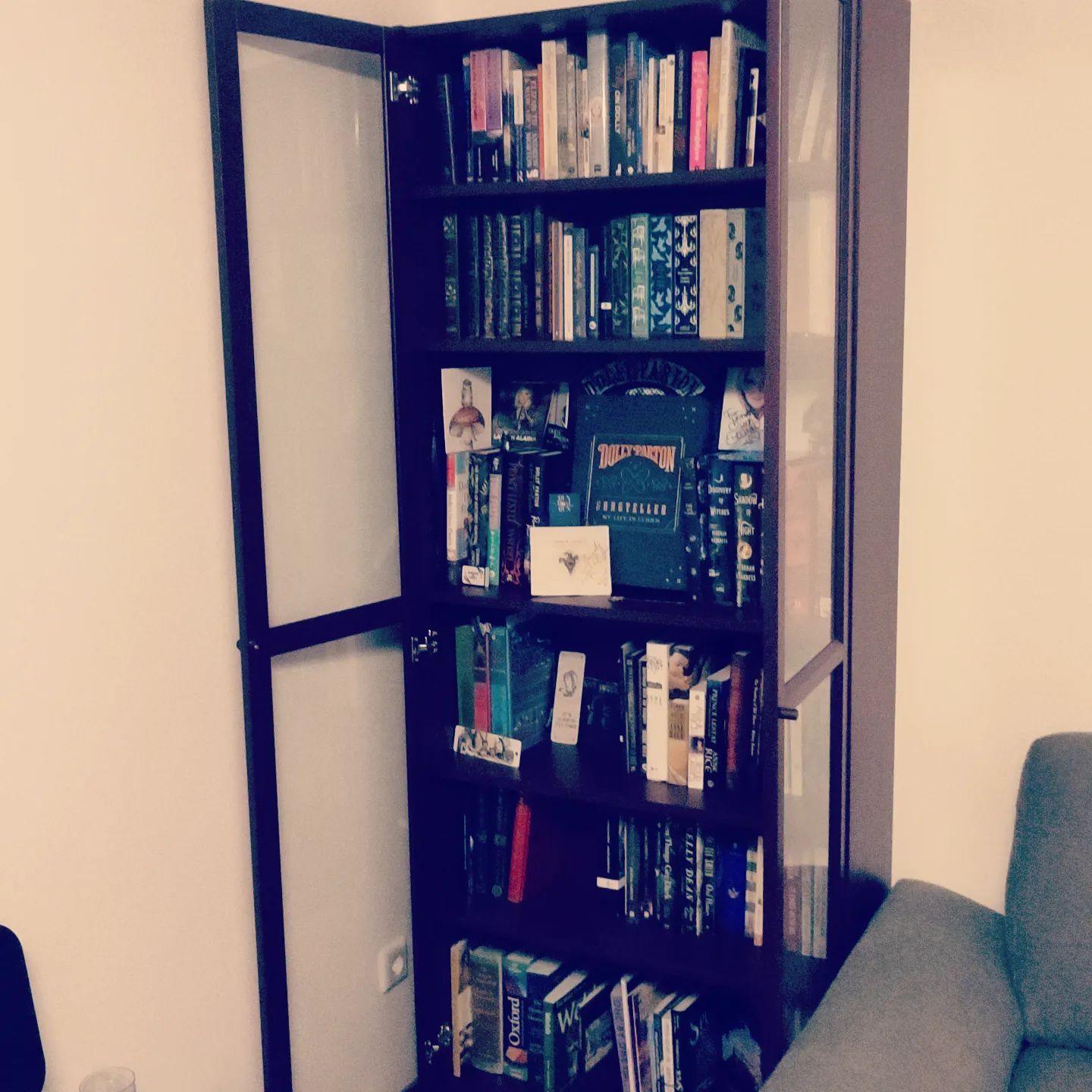 (Pictured: Bronte’s bookshelves are full of his heroes)