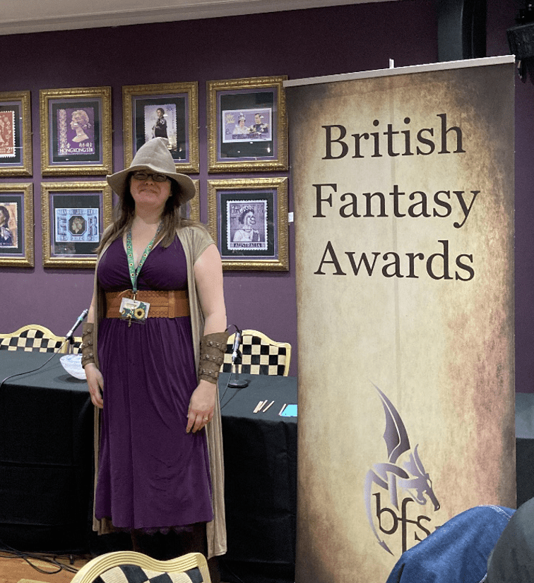 (Pictured, says Gabrielle: My first time at Fantasycon in 2024, dressed as Gale (BG3) for the banquet. I missed 2025, but I shall be returning in 2026!)