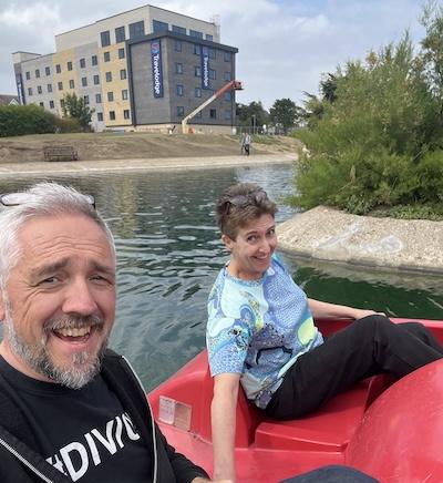 Heide Goody and Iain Grant. If you know us at all, you know that we write together. You might know that we like to mess about and make funny social media content. If you know our books at all, you might go, “Oh yeah, they have that series where Satan’s made redundant from Hell and sent to live in Birmingham. What’s it called? Clovenhoof.”