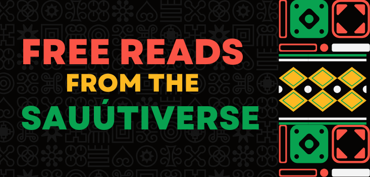 A year and a half since the BFA feature ‘The Call of Sauúti’, we’d love to share with you some of our fiction, available free online, and its’ all set in the Afrocentric Sauútiverse. Through a different kind of writing and unique worldbuilding, we continue to cultivate inclusive characters and stories that engage with difference.
